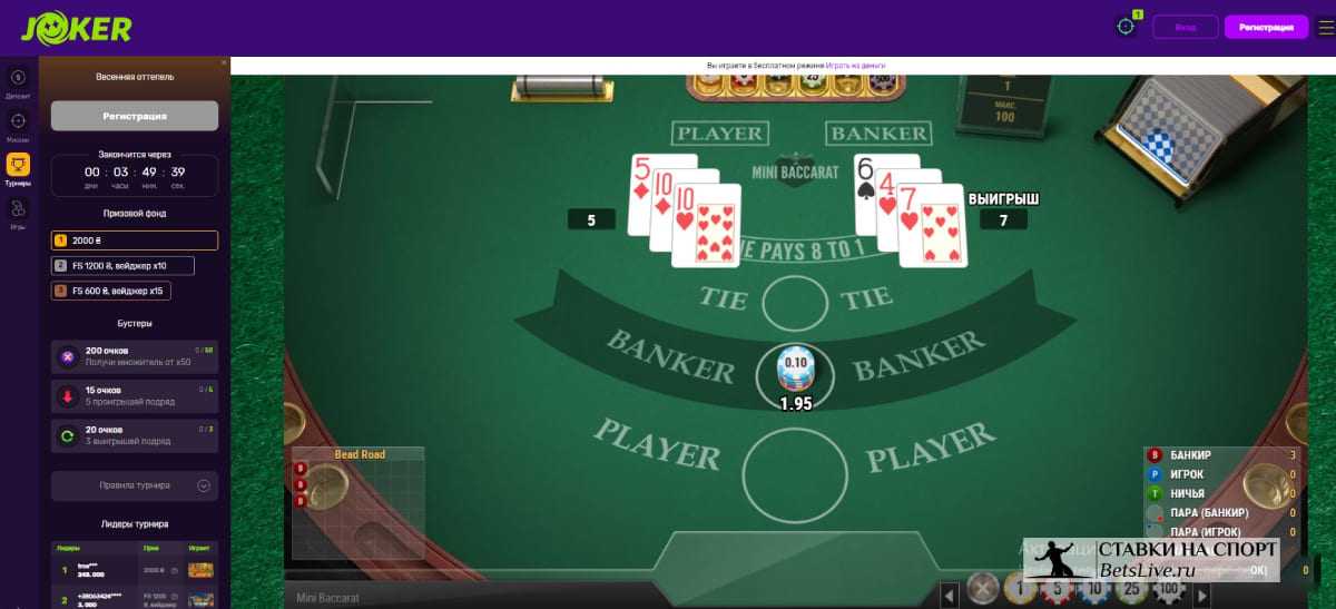 - Победа Banker c 7 или 8 очками — 40:1 и 25:1 соответственно.