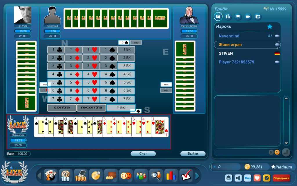 Изначально необходимо указать уровень и деноминацию, при этом, следующее назначение всегда должно быть выше, чем уже названное. Далее игрок называет число взяток, которые он может взять. После нужно приступать к контре. Речь идет о заявках, которые не позволяют другим командным игрокам взять количество взяток, что было указано. Существуют штрафы за посад, который получен под контрой. Также игроки могут рассчитывать на премии, которые им начисляются за реализованный контракт. Реконтра – это последний ход. От предыдущего он отличается тем, что премии и штрафы удваиваются. Некоторые игроки выбирают только пас и предложение контракта для выигрыша, другие пытаются выжать максимально все доступные ресурсы и задействовать все четыре способа. Если понять специфику игры, то можно выиграть без особых сложностей.
