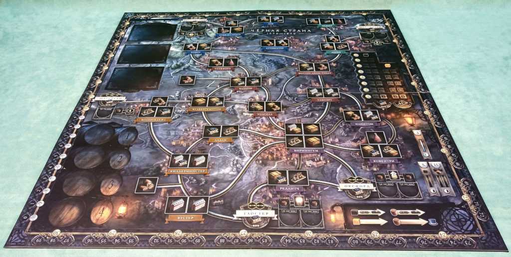 Игровое поле двухстороннее. На одной стороне «дневной» Уэст-Мидлендсе, на другой — «ночной». Поле очень интересно прорисовано — детальные города, соединяющие их реки и железные дороги, орнамент по периметру поля и вокруг мест выкладки карт, а на «ночной» стороне — «освещающие» поле масленые фонари.