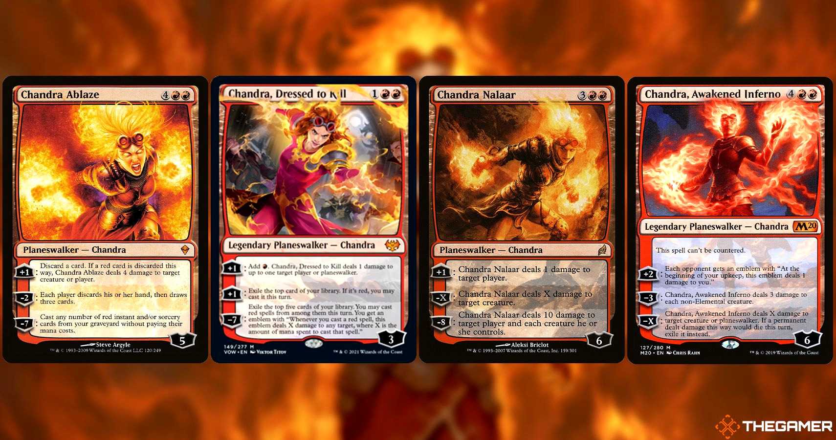 Первая и третья способности Аджани, Доблестного Защитника, дают возможность усилить своих существ, а вторая поможет вам найти и взять в руку карту существа. Но представленные в этих колодах таланты Теззерета и Аджани не единственные! В других сюжетных выпусках есть видоизмененные карты этих же мироходцев.