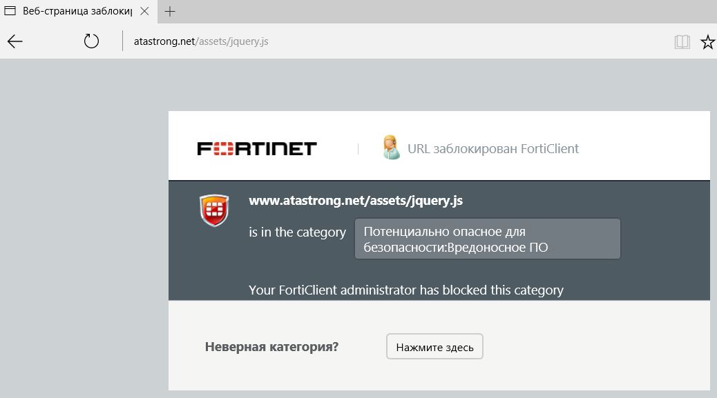 Первые четыре теста FortiClient прошел успешно. Сообщения о заблокированных угрозах появлялись прямо в окне браузера, вместо содержимого инфицированных веб-страниц. Так же произошло и во всех тестах с шестого по десятый, однако пятый тест FortiClient провалил. Модификация трояна Hupigon запустилась, показала отвлекающий маневр во весь экран и установила в системе бэкдор. FortiClient даже не шелохнулся. Это была единственная его осечка за всю серию экспериментов, но очень серьезная по своим последствиям.