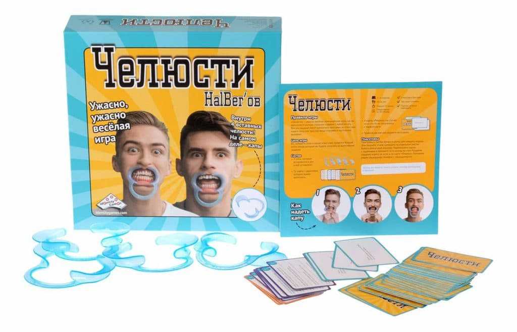 Чтобы понять суть игры, нужно понимать, из чего состоит ее набор. Стоит отметить, что сама коробка довольно большая, так как в ней находятся каппы и другие детали. Обычно на коробке изображены подростки с зубными протезами во рту. Ребята забавно выглядят. Не пропустите девиз, который написан на упаковке: «Играю ужасно, ужасно весело».