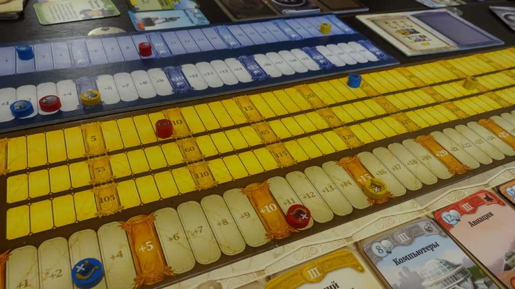 Особой изюминкой, можно назвать эффект «качелей». Поясню, что я имею ввиду. В наших последних партиях на троих, на столе неоднократно возникала, казалось бы, радикальная ситуация в пользу одного из игроков. И складывалось ощущение что все, «партия». Но нет! Что-то менялось и уже другой игрок был «на коне». И подобное происходило неоднократно в течении одной партии. При этом, у каждого была своя тактика. Но, стоит учитывать, что в большинстве партий на двоих игроки будут идти «впритирку» по всем показателям. А вот играя втроем/вчетвером сложно угнаться за каждым. Поэтому именно в таких партиях будет возникать эффект «качелей». А это значит, что самая интересная партия будет вчетвером!