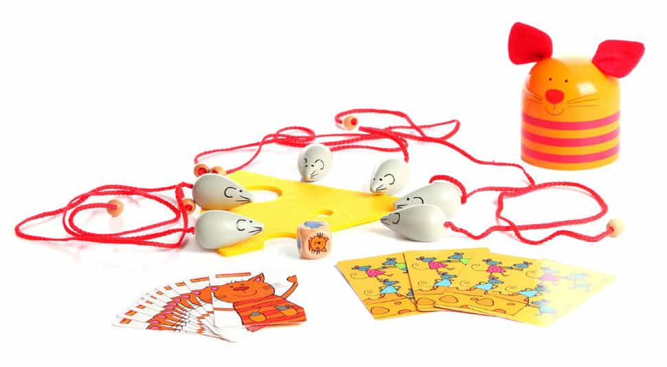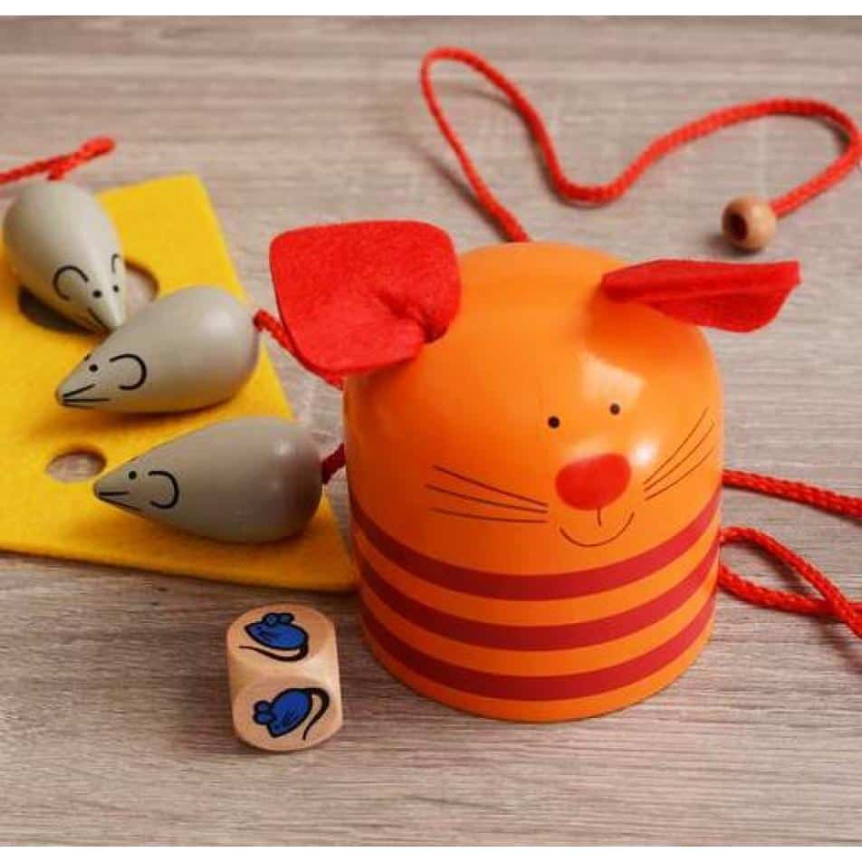 Плюсом можно считать её оформление. Все компоненты набора выполнены из натуральных материалов. Их приятно трогать, а дети не сломают их в первую же игру. Набор относится к развлечениям, в которых интересна не сама победа, а активное участие. Дергать мышей и набрасываться кото-стаканом на добычу будет интересно всем игрокам.