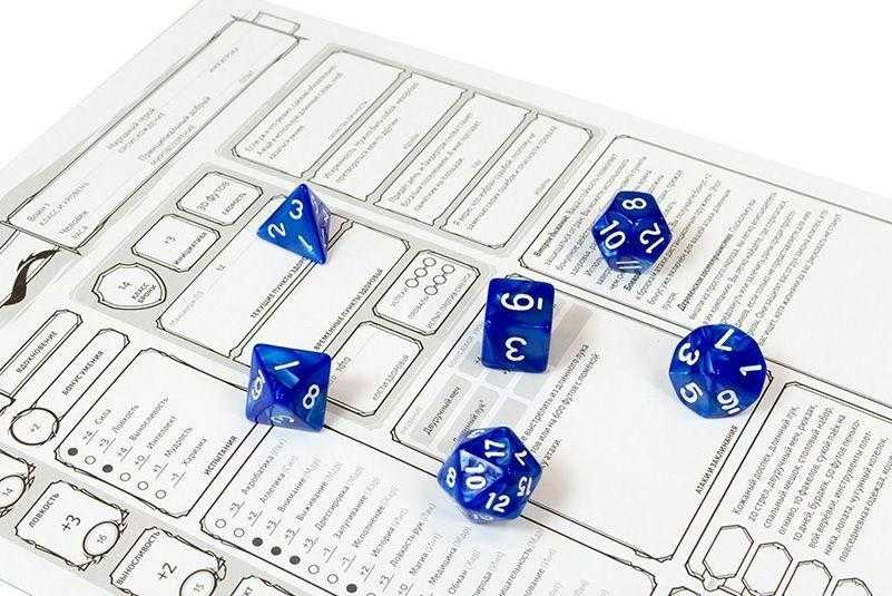 Все события, исход которых неясен, требуют случайного определения результата. На него отвечает набор кубиков. В классические наборы входят кости с 4, 6, 8, 10, 12, 20 и 100 гранями. (вместо процентного стогранного может быть использована пара 10-гранных с десятками и единицами).