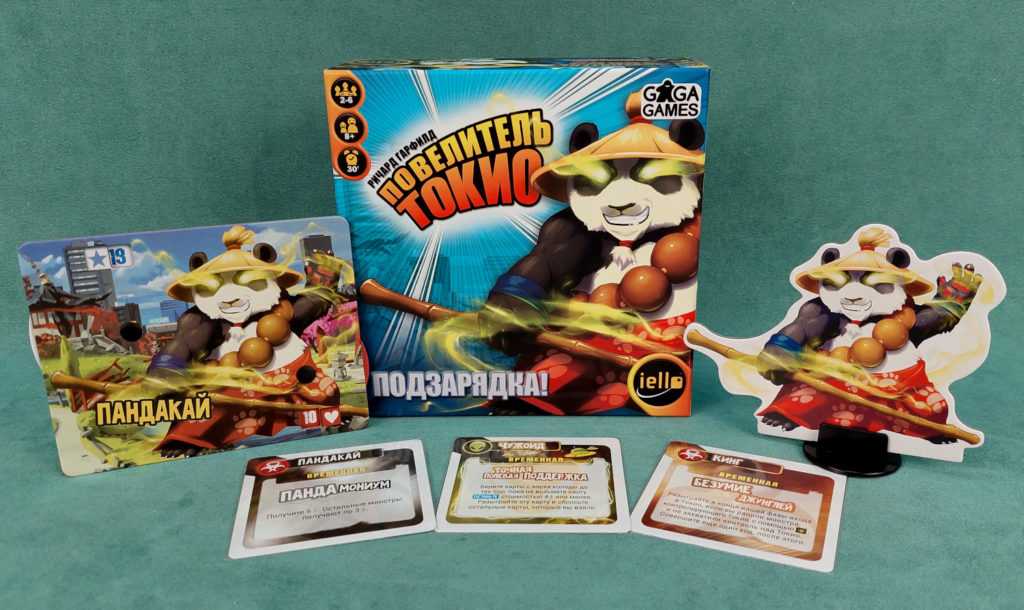 «Подзарядка» — локализованная коробочка с небольшим, но очень важным дополнением. Включает в себя нового монстра – «Панда-Кай», 7 жетончиков для новых эффектов и целую стопку новых карт эволюции: по 8 карт для девяти монстров.