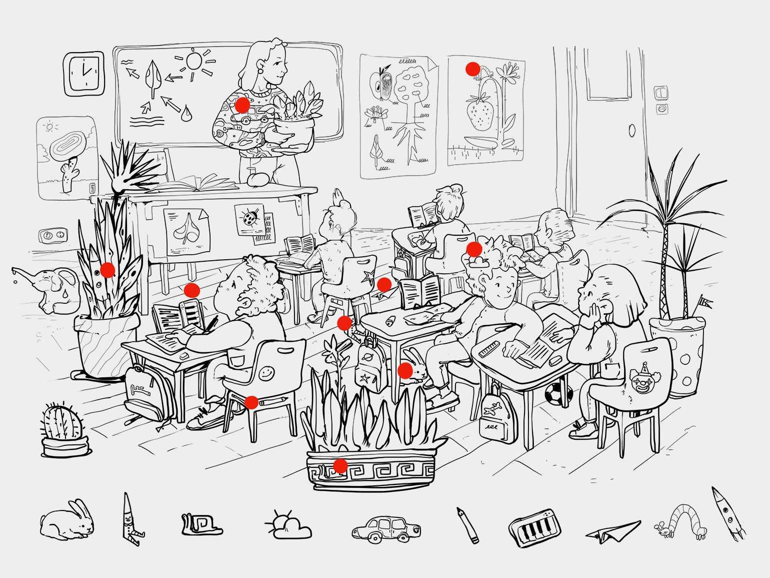 Лайфхак: дополните презентацию с картинкой анимированным эффектом, чтобы во время игры быстро отмечать каждый спрятанный предмет, например, красной точкой, как только кто-то из ребят его найдёт. К концу игры у вас получится картинка, на которой будут отмечены все спрятанные предметы.