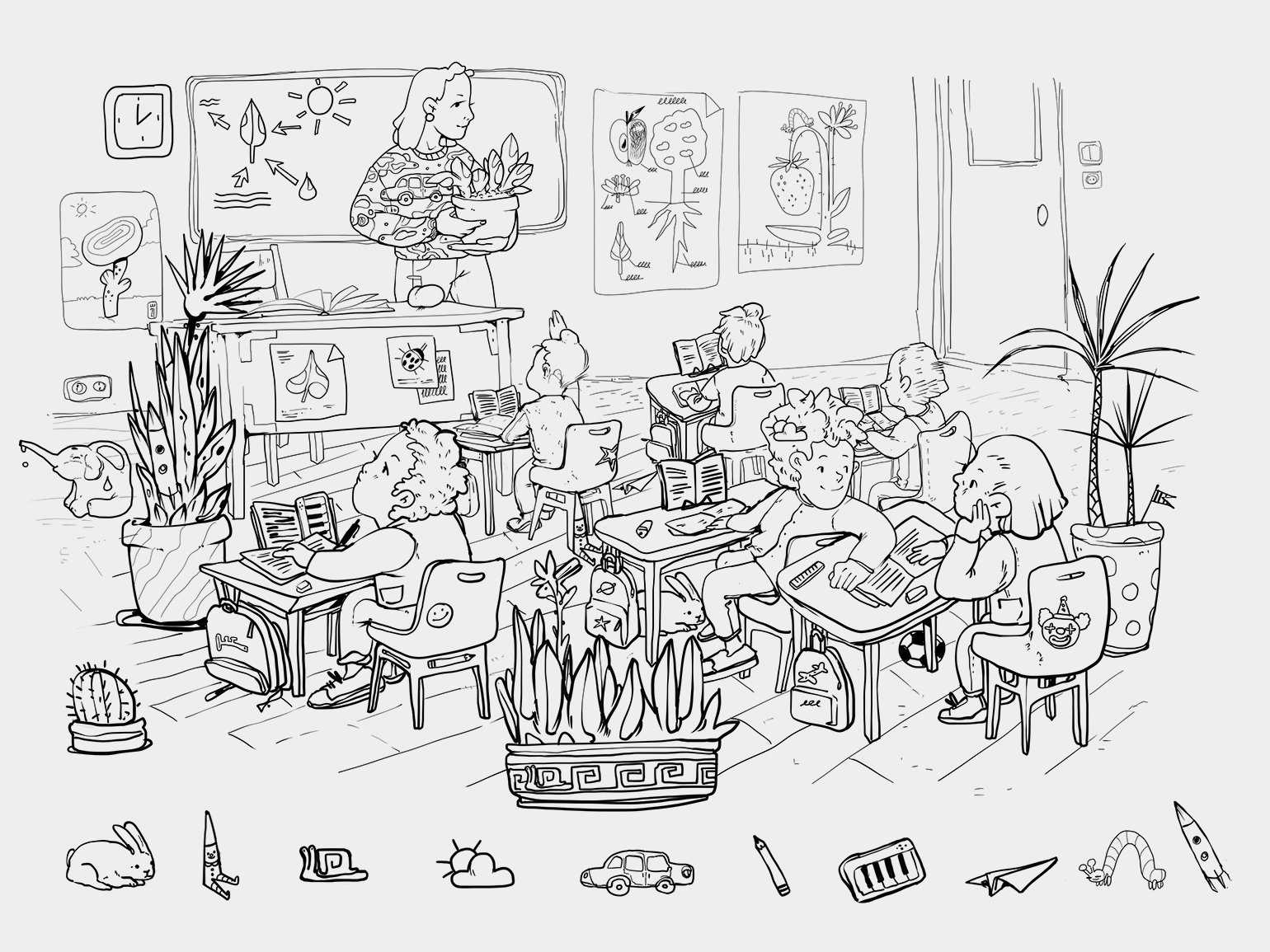 Примеры таких изображений есть здесь и здесь. А вообще, их можно искать в интернете по запросу hidden pictures («спрятанные картинки»). Кстати, если вы преподаёте иностранный язык, то вот вам идея: можно подобрать картинки, где есть предметы по лексике урока.