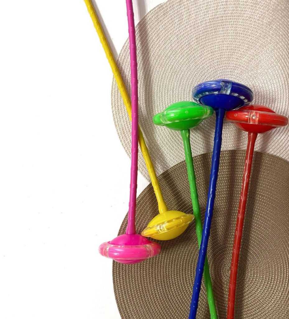 - Перепрыгивайте свободной ногой через палку нейроскакалки, а опорной ногой поддерживайте вращение тренажера.