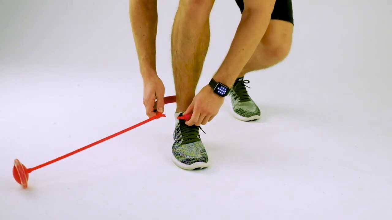 - Застегните пластиковый обруч скакалки вокруг ноги. Замок у детали крепкий, не расстегивается даже при активном использовании.
