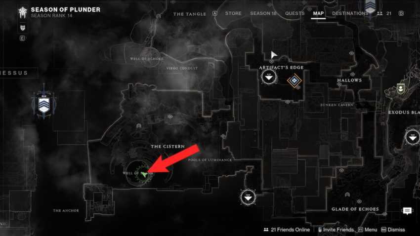 После завершения Экспедиции станет доступен четвертый шаг. Этот немного проще со своей загадкой. Выделенный текст гласит: «Проход через отпечаток пирамиды колонны Нессуса». В этой части вам нужно будет отправиться на планету Несс и исследовать регион Цистерна. Вам нужно будет пройти в юго-западную часть карты и исследовать Колодец Пламени.