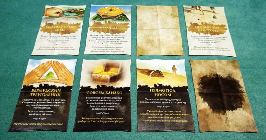 11 подсказок область. Каждому игроку в начале игры выдается подсказка, в каких областях сокровища нет.