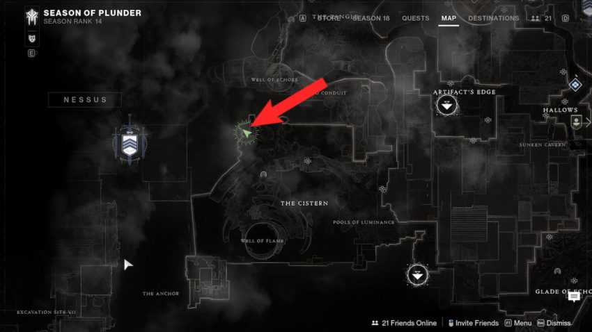 На последнем шаге вы останетесь на Nessus, поэтому вам не нужно будет перемещаться в другое место. Выделенный текст в этом отрывке гласит: «Жидкость действительно упала с неба, разбитая сфера, сокровище». Теперь вам нужно пробраться к северу от локации «Колодец пламени» и пройти к северо-западной части карты, прямо по краю. Здесь вы найдете большое сооружение, из которого падает молоко вексов.