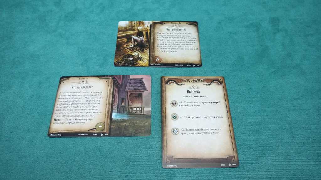 Фазы повторяются друг за другом, пока игра не придет, к какому-то результату. Что интересно, даже достигнув негативного исхода, игра не заканчивается, вы читаете соответствующий финалу партии текст из книги сценариев и продолжаете игру. Конечно, если вы провалили сценарий, игра на вас наложит отрицательные эффекты, но это далеко не конец и у вас будет возможность продолжить игру.