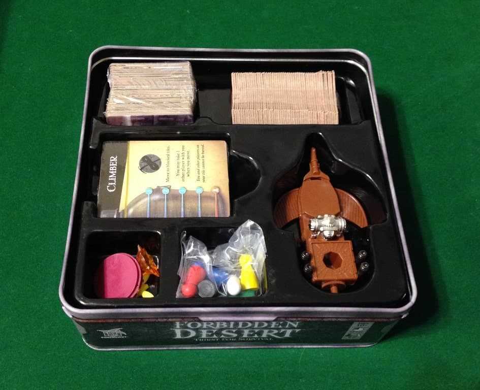 В настольной игре Forbidden desert участники будут исследовать древний заброшенный город, в котором спрятан их шанс на спасение. Делать это оказывается сложно: с каждым порывом песчаной бури развалины засыпает песок, мешая вам добраться до необходимых деталей.