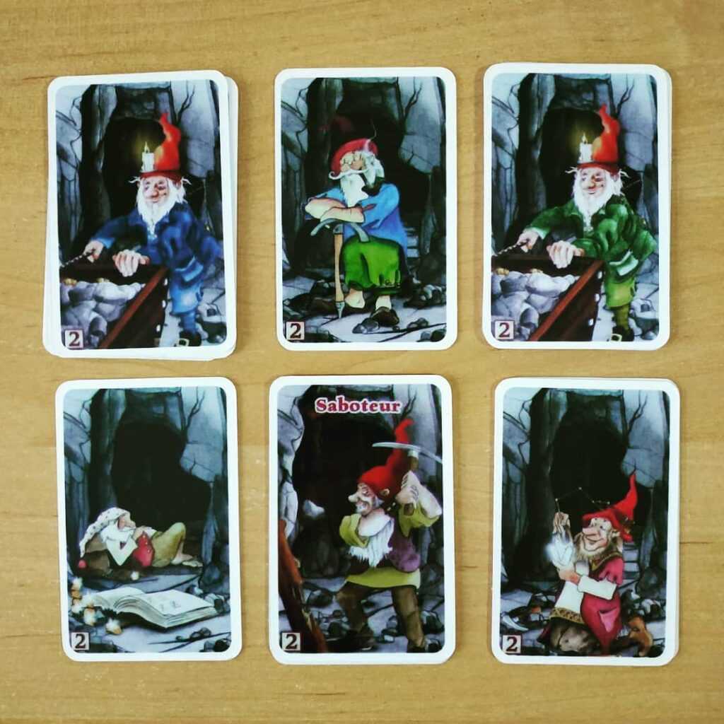 Карточки раздаются анонимно. Последняя, лишняя, сбрасывается вслепую – неизвестно, сколько сыграет саботеров и кто есть кто. Стартовый расклад «Гномов-вредителей» похож на букву «Т»: