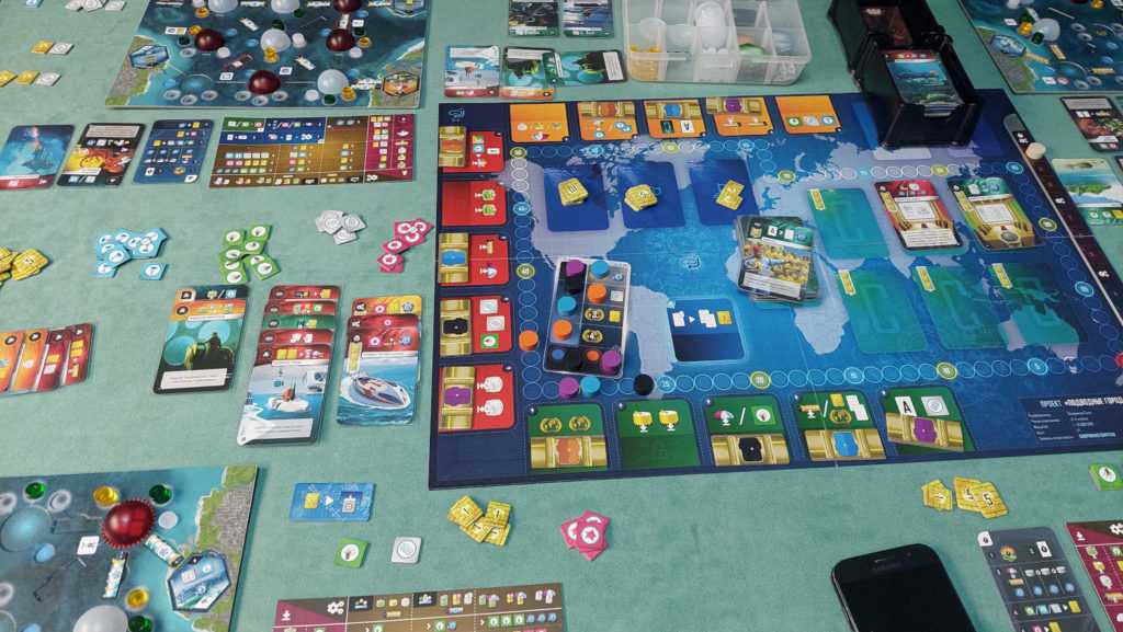 Игра с первой партии зацепила настолько, что многие спорные моменты в оформлении и дизайне, отсутствие предусмотренной системы хранения для огромного количества компонентов, откровенно, среднего качества исполнения — не стали помехой. Еще одной особенностью, к которой нужно быть готовым – приличное время партии. Как и во многих других играх на карточном движке, «Подводные города» не терпят спешки. Особенно для новичков. Как бы вы не старались, среднее время 30-45 минут времени на игрока останутся непреодолимой планкой. А ещё в игре есть очень любопытный и непростой одиночный режим. Дополнение «Новые открытия» — желательно к приобретению, прежде всего, из-за удобных двуслойных планшетов и дополнительного разнообразия игровых карт, помощников с асимметричными и интересными свойствами, комплексного дополнения с музеем, куда игроки будут сдавать найденные на морском дне редкие находки.