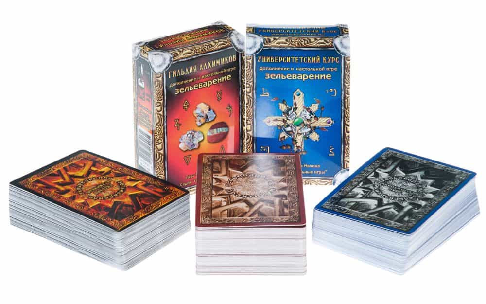 Игра выдержала несколько переизданий. Сейчас ее поклонникам доступна базовая версия «Зельеварение. Практикум» и два дополнения – «Университетский курс» и «Гильдия алхимиков». «Зельеварение. Подарочный набор» включает в себя все три сета.
