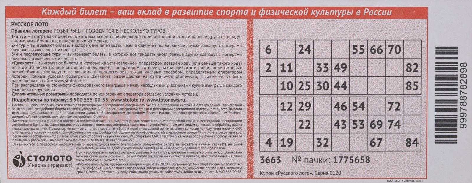 Билеты лотереи «Русское лото» можно приобретать и в более традиционном – бумажном – виде. Вы можете купить классический типографский лотерейный билет «Русского лото» или специальный лотерейный купон, который используется для покупки и регистрации электронных билетов.