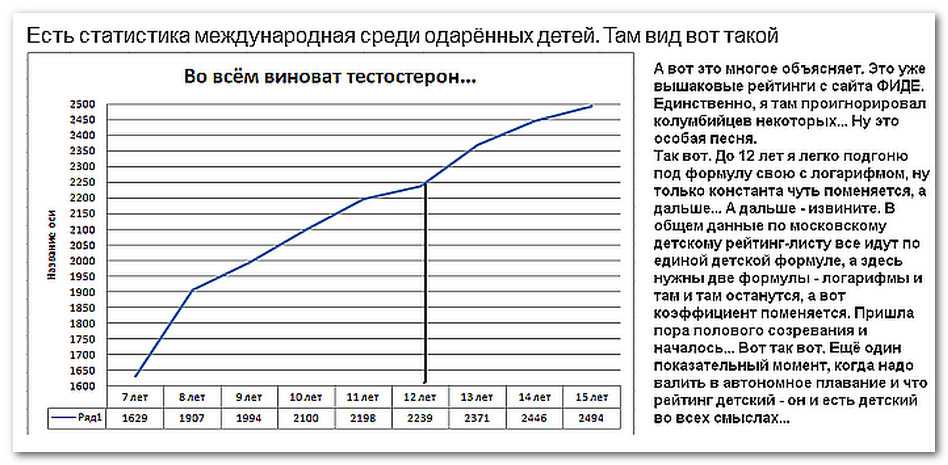«Я рассмотрел графики роста по рейтингу самых сильных московских детей, кто ещё находится в детском рейтинг-листе. Не буду показывать как я шёл к итоговому результату — это долго и нудно