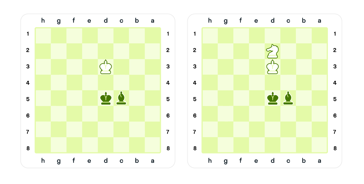 - Два слона против коня.