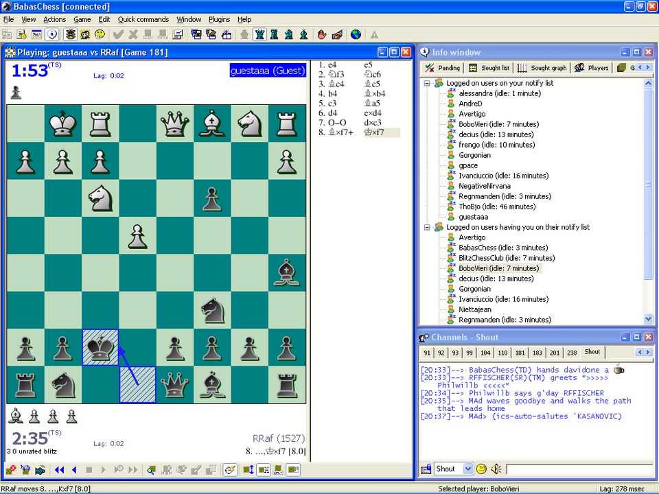 У BabasChess самый популярный интерфейс для шахматных серверов (FICS), есть гибкие возможности изменения доски, присутствует возможность компоновки окон и присутствует поддержка плагинов.