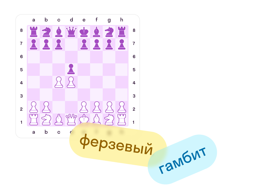 Начнем с дебюта, который стал известен всему миру после выхода серии «Queen’s Move» (в оригинальном ферзевом гамбите, буквально — ферзевый гамбит). Получается ходами 1.d4 d5 2.c4.