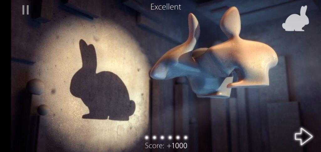 Shadowmatic — это уникальная 3D-головоломка с фотореалистичной графикой и оригинальной игровой механикой, которая заключается в том, что вы должны вращать различные трехмерные объекты в луче света, используя падающие на стену тени для создания различных силуэтов, соответствующих конкретным игровым ситуациям (например, сделать рыбу или чайник). Это непростая задача, но игра блестяще стимулирует пространственное воображение.