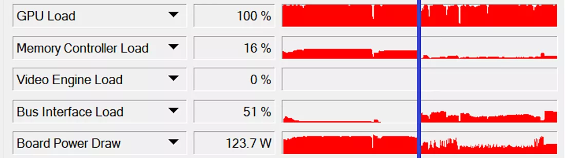Это число представляет собой долю фиксированного интервала времени от последнего периода выборки, в течение которого GPU обрабатывал потоки на любом своём ядре. Таким образом, может выглядеть, что GPU полностью нагружен, хотя на самом деле он почти простаивает. Лучший набор показателей для стресс-тестирования — сочетание частоты кадров и потребляемой мощности.