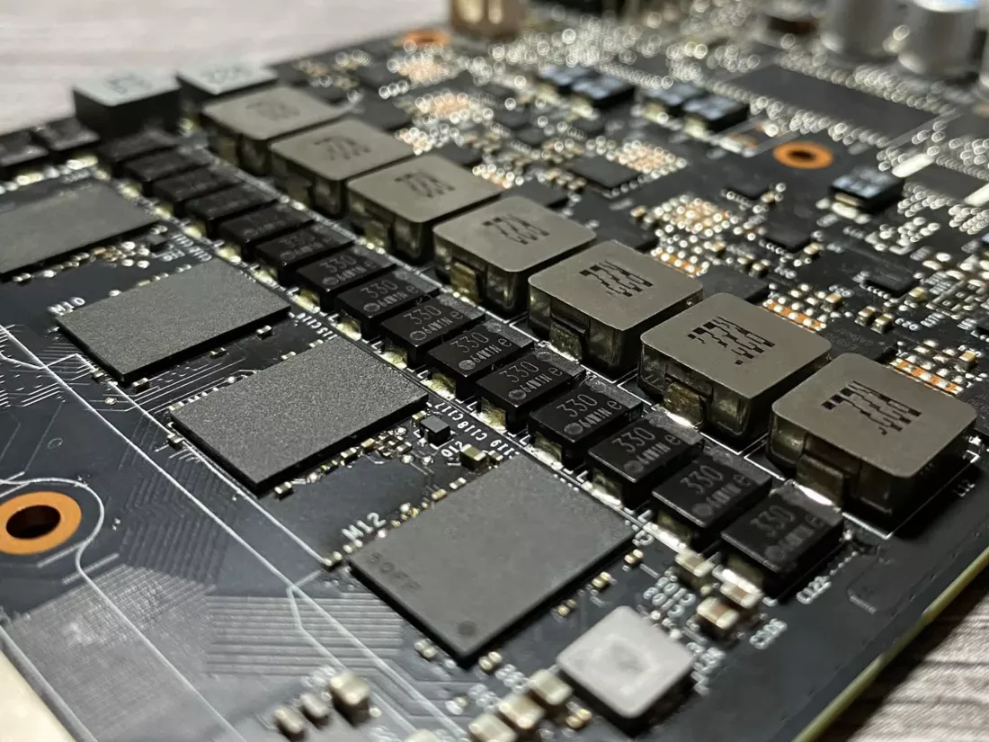 В Speed Way карта показала в среднем 15 кадров/с и 205 Вт (лимит этой карты 250 Вт). В Fire Strike Ultra набрано 22 кадра/с и 196 Вт, в Night Raid значения были 243 кадра/с и 234 Вт. Потребляемая мощность выше при более высоком разрешении вроде 8K. В первых двух тестах карте не хватило памяти, чтобы предотвратить простаивание графического процессора. Частота кадров в обоих тестах упала ниже 3 кадров/с, а потребление уменьшилось вдвое.