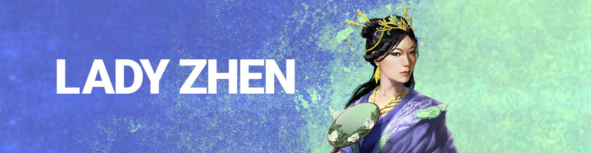 Lady Zhen was initially the wife of Yuan Shao’s son, Yuan Xi. During the conflict against the Yuan clan she was captured by Cao Cao, and later married his son Cao Pi.