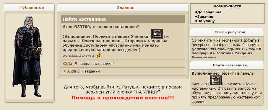 Чтобы новичкам было проще освоиться, на старте установлены подсказки. С подробными инструкциями вам будут предлагать найти наставника, заглянуть в лавку торговца, ремесленника, провести несколько первых боев. За выполнение миссий начисляются вознаграждения и повышается уровень:
