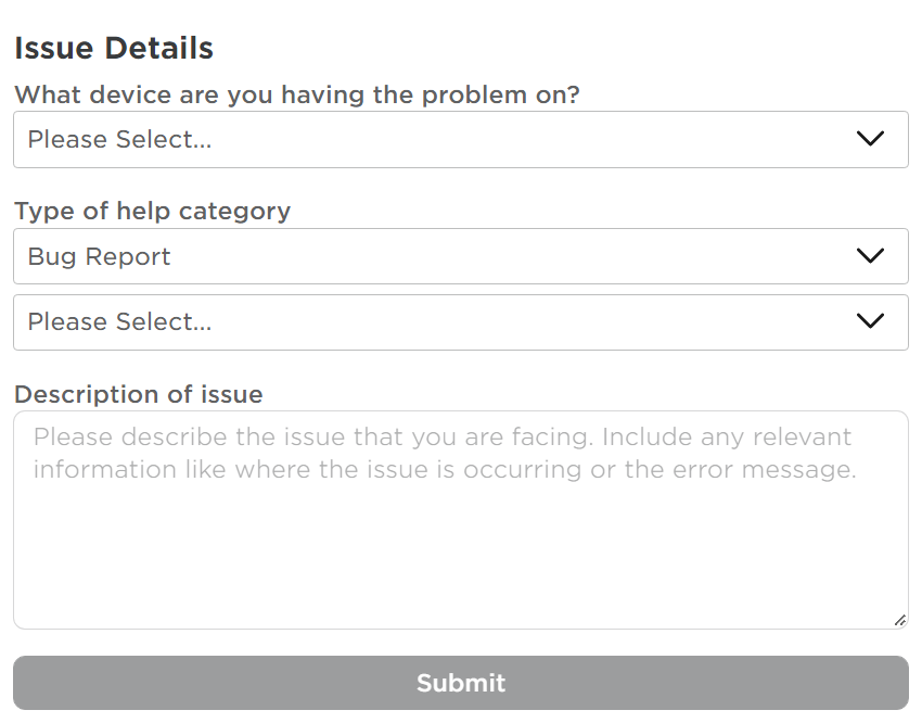 Заполните стандартную анкету. Укажите никнейм, реальное имя, почту, причину обращения и прочие данные. Опишите проблему в окне Description of the issues. После этого нажмите Submit. Учтите, что письмо должно быть написано на английском языке. При возникновении трудностей используйте переводчик.