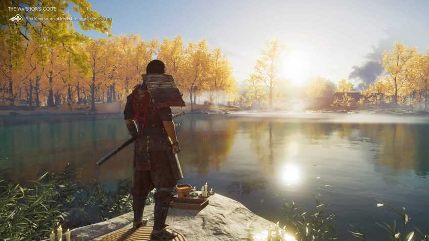 Хотя ладно, это не совсем правда. Есть одна вещь, в которой Ghost of Tsushima на голову превосходит предыдущие игры Sucker Punch, да и, раз уж на то пошло, большинство других экшенов в открытом мире: дизайн сеттинга. Остров Цусима получился невероятно живописным, но при этом настоящим местом. Художники мастерски передали естественную красоту японской природы, которую мы не так уж и часто видим в видеоиграх. Осенние леса, бескрайние поля пампасной травы, речушки, равнины и горные перевалы… Пейзажи Цусимы ни с чем не спутать. И графика здесь вообще ни при чём — всё дело в красках и композиции. В жёлтой опавшей листве, в ослепительной белизне чайных полей, в солнечных бликах, сверкающих сквозь заросли бамбука. Куда ни взгляни, возникает чувство, будто смотришь в калейдоскоп, — настолько всё объёмное и пышущее жизнью.