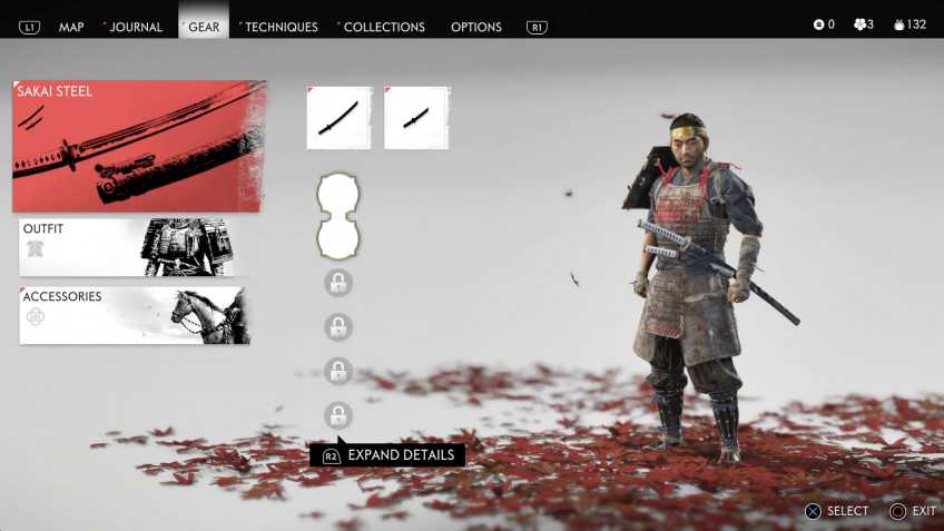 К сожалению, даже при таких скромных масштабах мир вышел, откровенно говоря, скучноватым. Ghost of Tsushima настаивает на том, чтобы игрок исследовал локации в любом темпе и любым путём, каким заблагорассудится. Но вместе с тем авторы боятся, что вы пропустите всё самое интересное, поэтому действительно ценные вещи вроде комплектов брони или уникальных навыков не получится отыскать случайно. Они строго привязаны к квестам, и журнал заданий услужливо подскажет, где их взять. По-настоящему «найти» в открытом мире можно только коллекционную чепуху, которая либо улучшает характеристики героя, либо позволяет изменить внешний вид оружия (точнее, только ножен). Иными словами, вы всегда знаете, на что в теории можете наткнуться, а это быстро убивает всякую радость открытия. Ни одна из находок не даст ощутимых бонусов, ни одна весомо не повлияет на геймплей — и в чём тогда смысл?