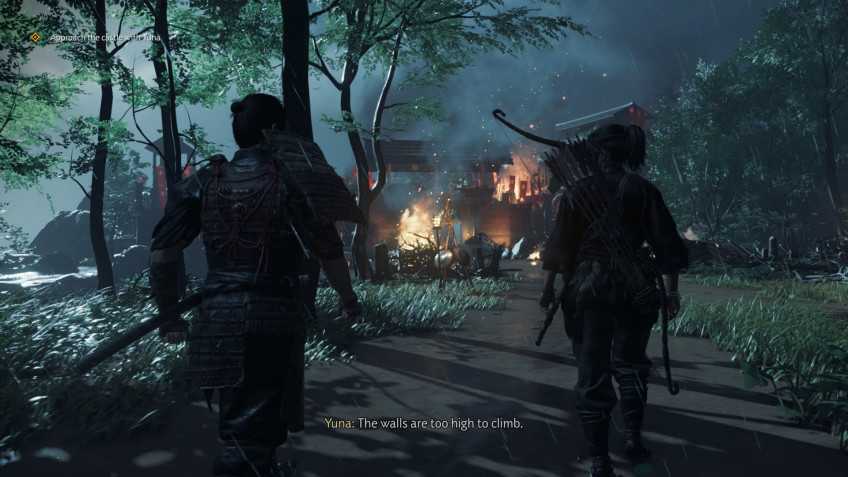 Обидно, но то же самое можно сказать и про сюжетные задания — да и весь сюжет в целом. У центрального конфликта есть мощный задел на драму: молодой самурай вынужден отказаться от кодекса бусидо и встать на бесчестный путь синоби, чтобы спасти свою родину и близких людей. Подобную историю можно интересно подать, но, к сожалению, режиссура в Ghost of Tsushima предельно пресная. По меркам игр она слишком медленно набирает обороты и слишком поздно раскручивается: следить за происходящим на экране становится интересно лишь в последней трети сюжета. А до этого момента ещё нужно дожить, продравшись через нескончаемые диалоги о воинской чести и вереницу однотипных баталий. Разработчики будто не знают, как ещё повысить ставки, поэтому в качестве кульминации каждой сюжетной арки просто бросают вас на штурм очередной крепости. Потому что, ну, эпично же.