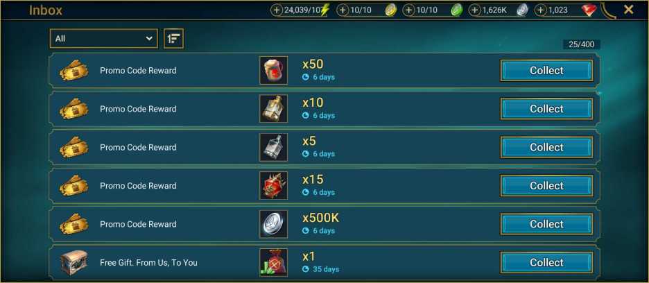 - Каждый промокод можно использовать 1 раз для одной учетной записи. Если вы получили награду, то повторно активировать его не получится.