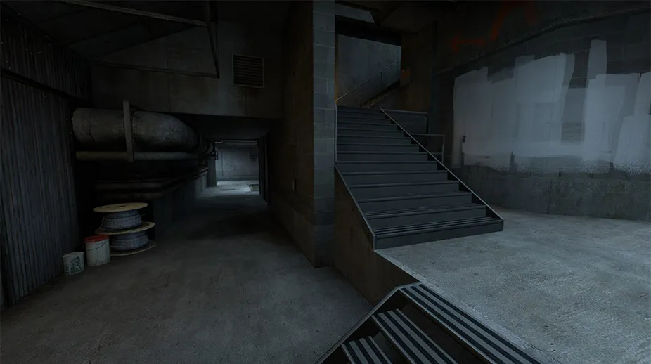 The Connector is an important area that connects the Lower Tunnels to the upstairs Mid area close to the Toilets. Terrorists must control this area if they want easy access up to the Park portion of the map. While this is mostly a travel area there is usually some fighting here as Defenders typically try to prevent Attackers from pushing this area.