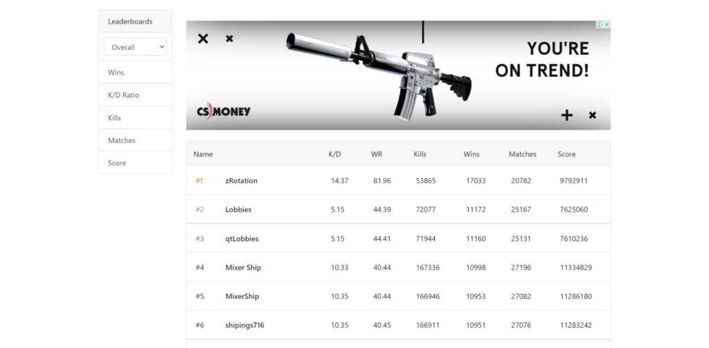 - Счет за матч: Этот показатель представляет собой комбинацию различных действий в игре, но в основном сводится к тому, сколько убийств вы совершаете в матче и насколько хорошо вы размещаете каждый раунд. Увеличение этого показателя напрямую связано с вашим K / D и средним временем матча, поэтому следить за ним интересно. Любите ли вы красться и переживать своих врагов или уничтожать как можно больше врагов из минигана, ваш счет за матч отслеживает все это.