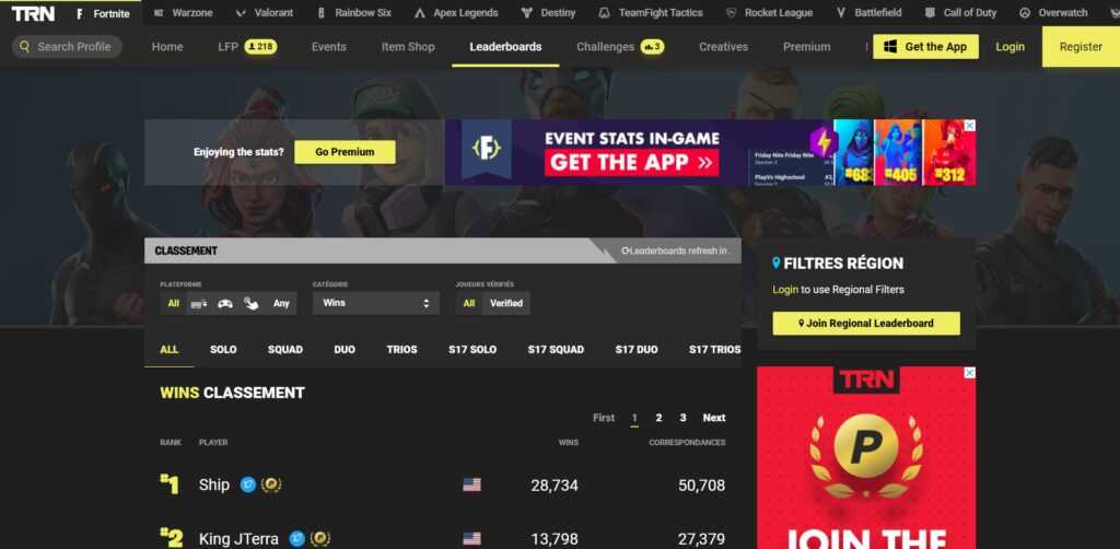 Fortnite Tracker — Таблицы лидеров Fortnite — Глобальные таблицы лидеров — Победы