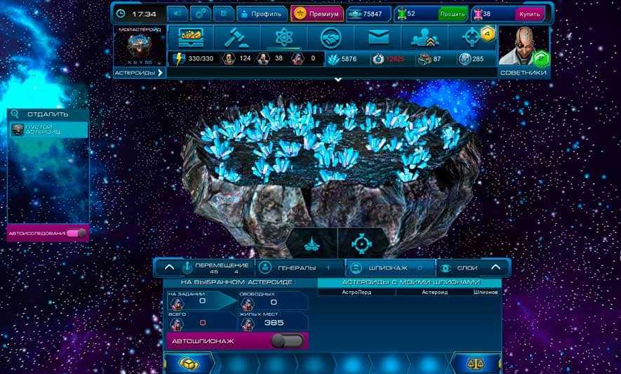 - Как только база будет на достойном уровне, а сформированный флот будет способен уничтожать легких ботов, то задумайтесь о колонизации близлежащих астероидов, так как добыча ресурсов на них многократно ускорит ваше развитие.