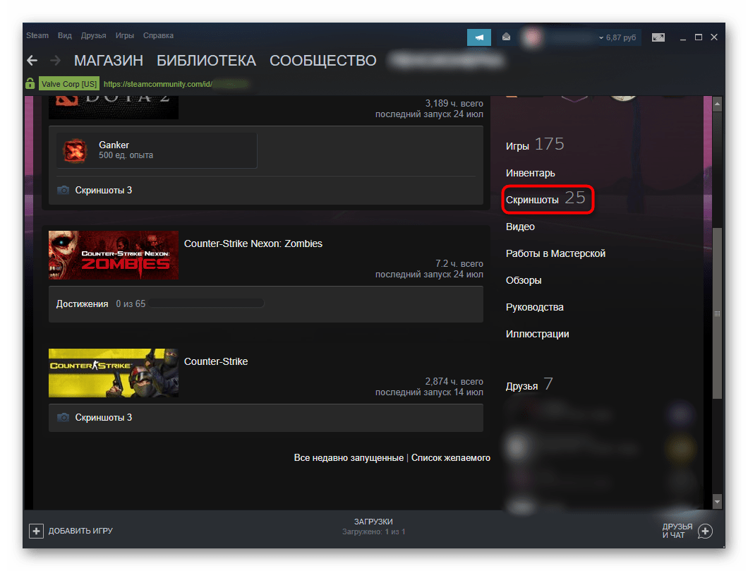 Загруженные снимки экранов на сервис становятся доступными через отдельный раздел аккаунта. Вам достаточно открыть свой профиль и перейти в «Скриншоты».