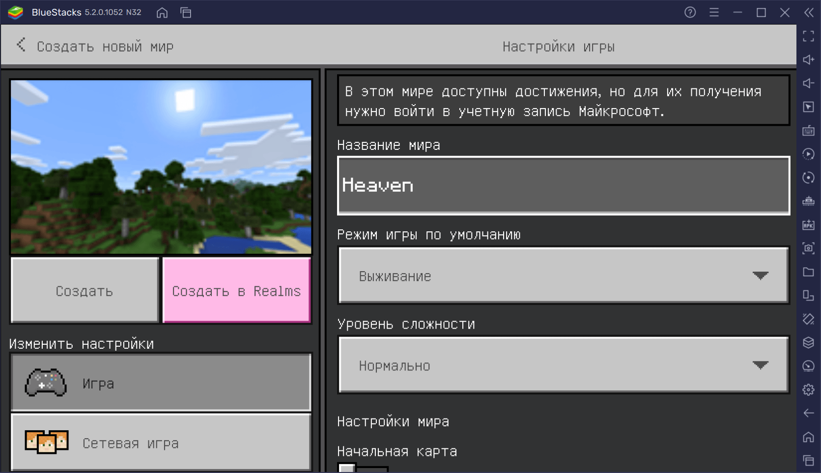 Создание нового мира в Minecraft