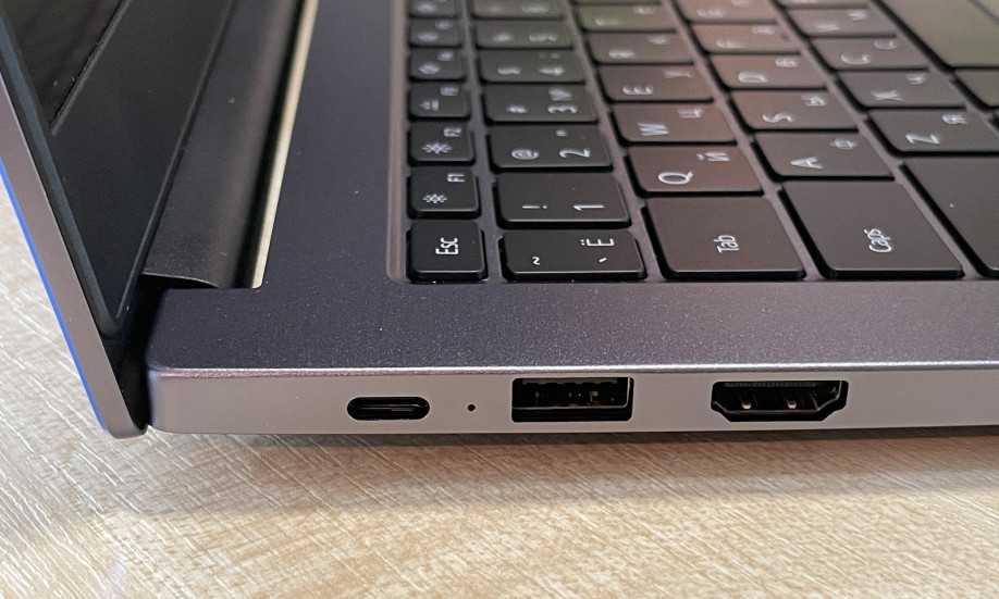 Что касается портов и интерфейсов подключения, то на правой боковой грани корпуса MagicBook 14 можно обнаружить один порт USB-A 3.0 и 3,5 мм отверстие для подключения проводных наушников или внешнего микрофона. На левой боковой стороне имеется один порт USB-A 3.0, HDMI, а также USB Type C с индикатором работы. USB-C разъём помимо прочего используется для подзарядки.