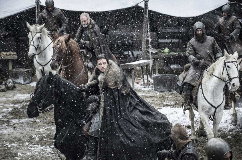 В это время Джон, объединившийся с Сансой, возглавляет армию из одичалых и вместе с северянами выдвигается к Винтерфеллу, который сейчас занимает Рамси Болтон. После кровопролитного сражения Джону удается одержать победу и вернуть себе и Сансе утерянный замок. Рамси погибает ужасной смертью, к большой радости поклонников сериала.