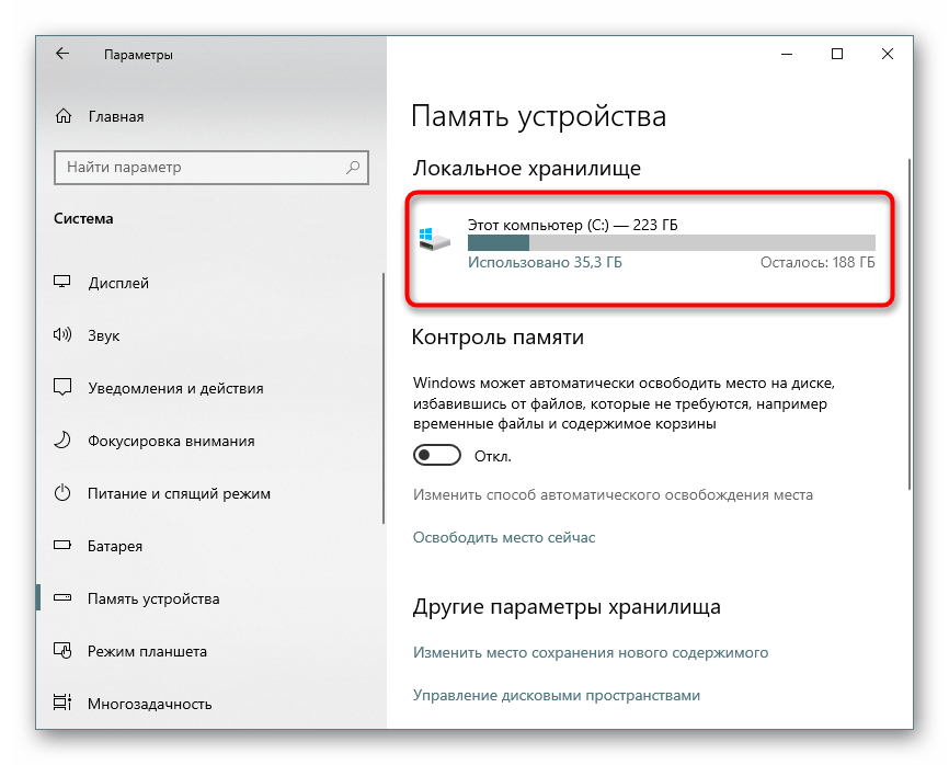 Подробнее: Освобождаем место на диске C в Windows 10