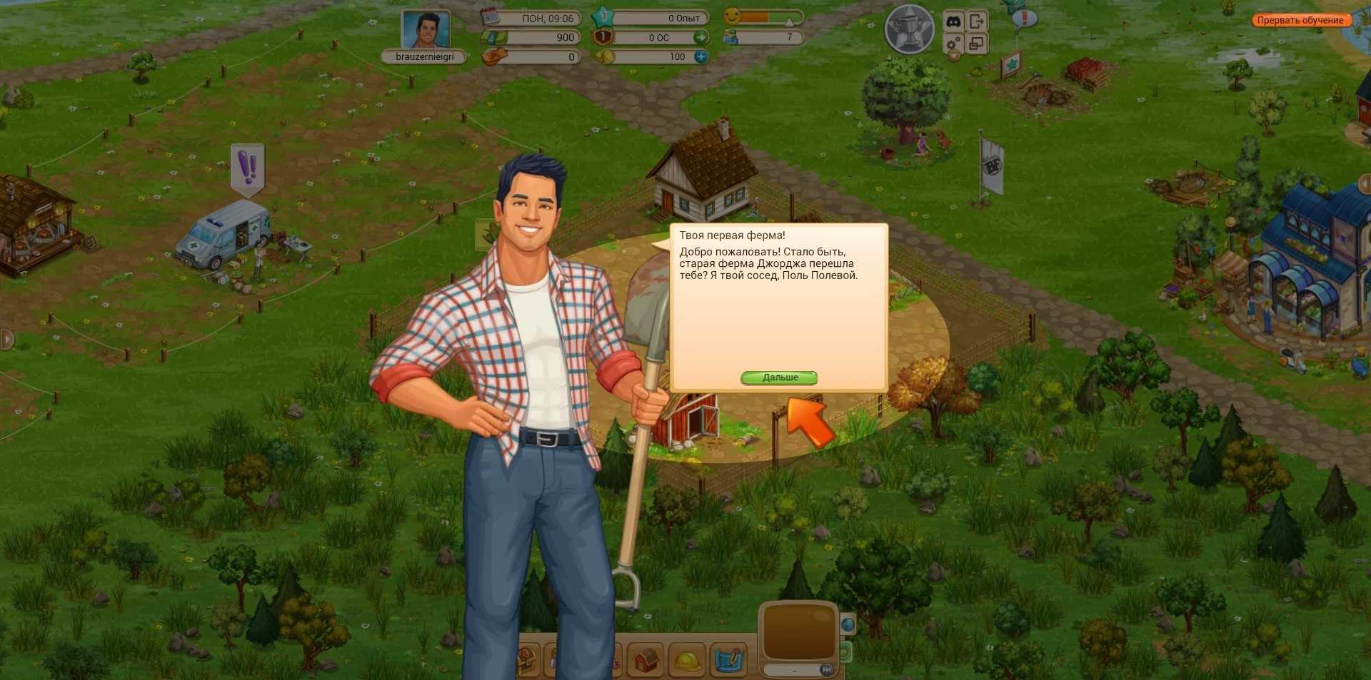 Ферма достается по наследству от дядюшки Джорджа и находится в очень плохом состоянии. Твой сосед Поль Полевой введет вас в курс всех дел. При желании начальный процесс обучения можно пропустить.