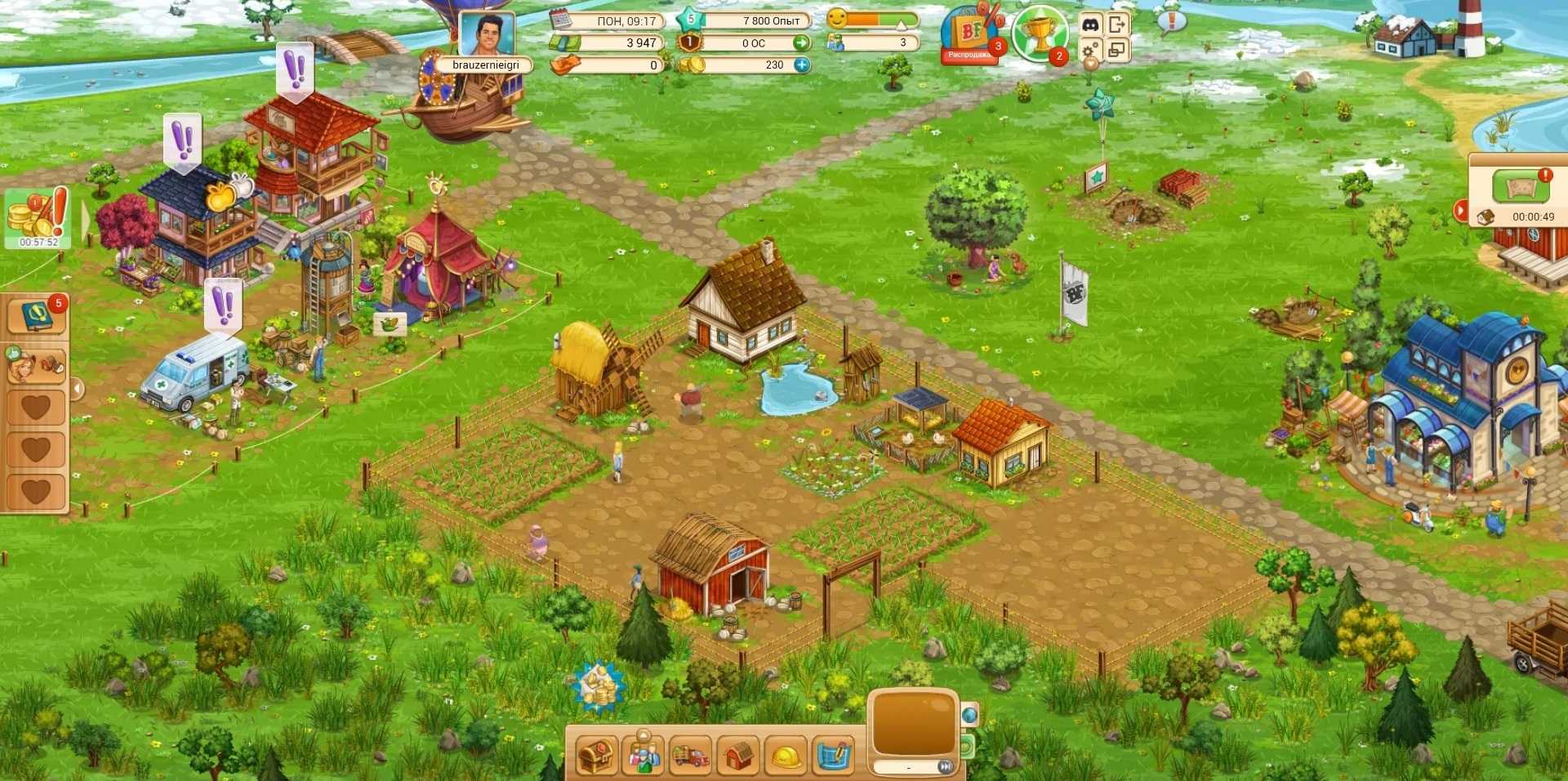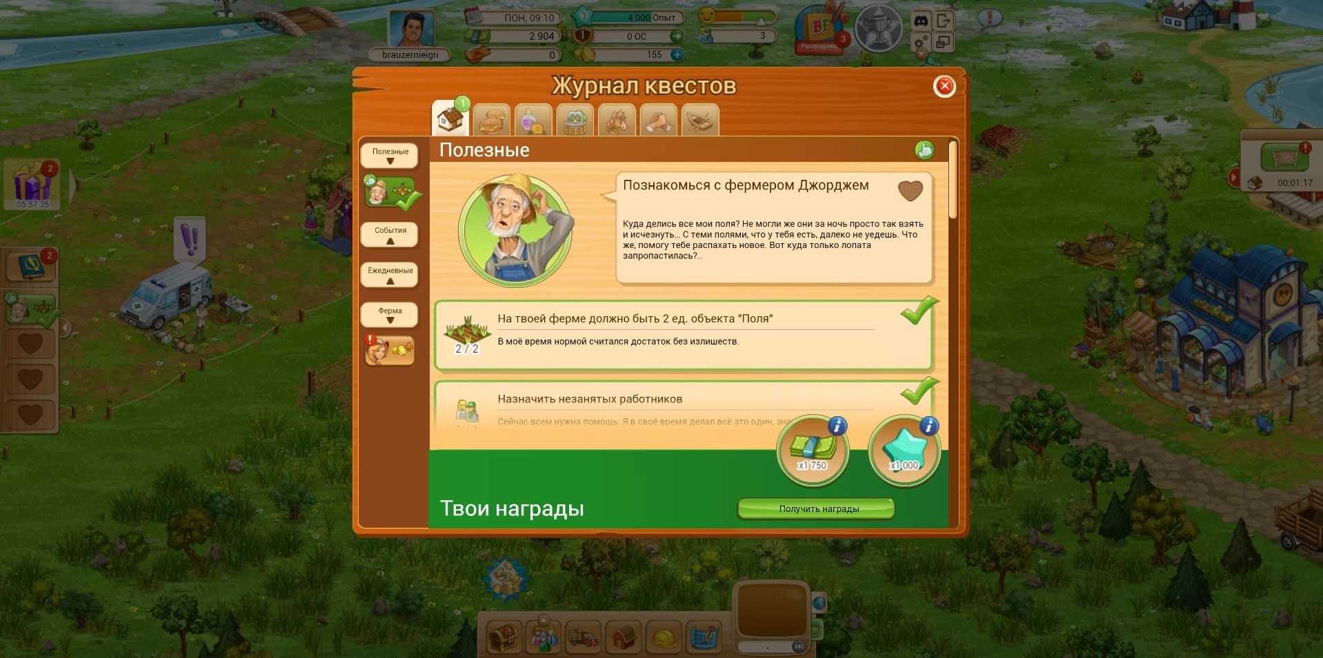 Из списка имеющихся заданий отдаете предпочтение наиболее подходящему и за счет одного клика начинайте его выполнять. Они не трудные, на их выполнение нужно минимум времени. По завершению игрок получает специальные очки опыта либо же деньги. Чем больше очков, тем больше шансов для перехода на следующий уровень. В нем Вас ожидает более развитая ферма с новыми возможностями.