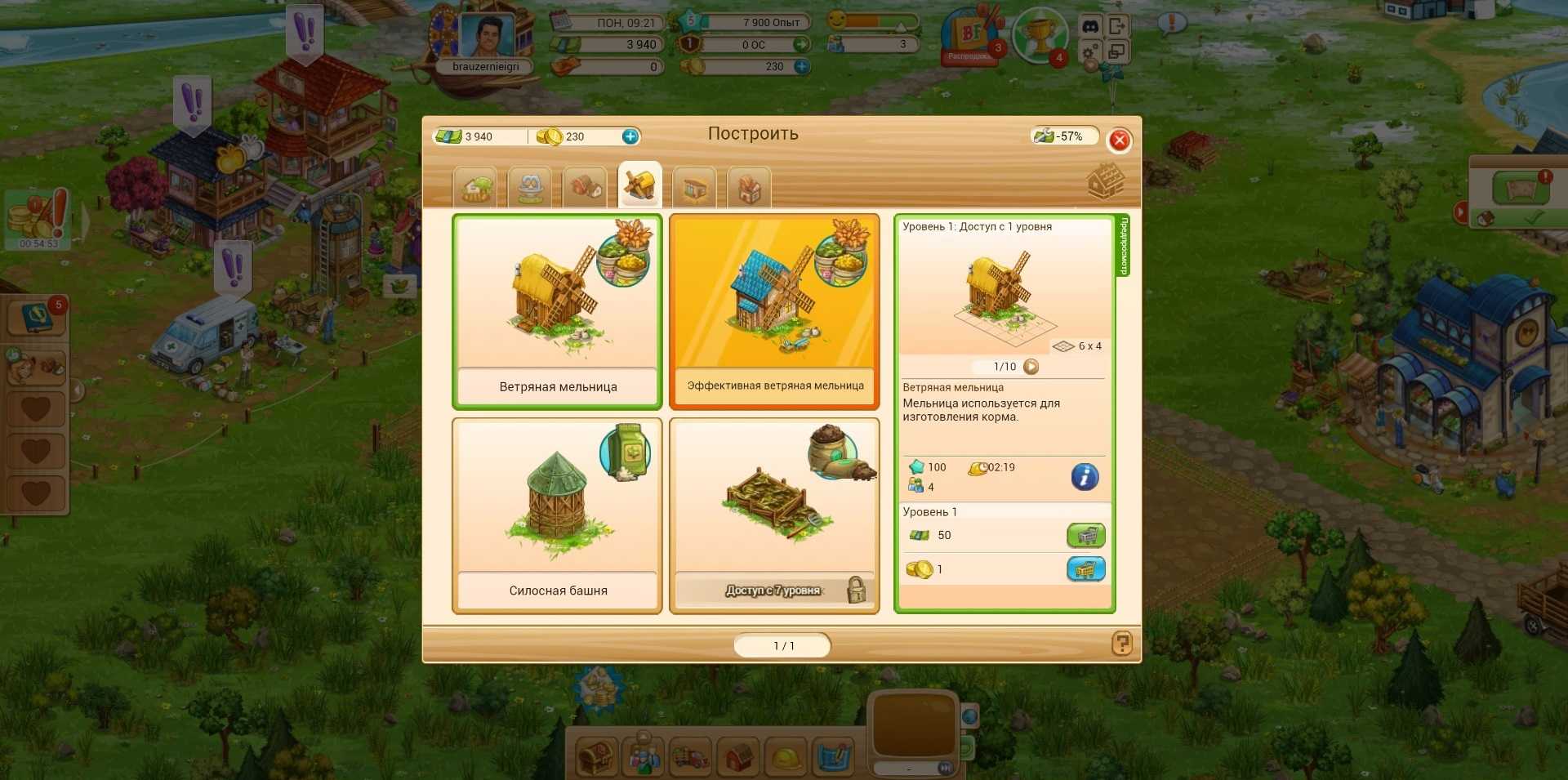 Для работы на ферме понадобятся рабочие. Отправьте свободных работников на мельницу и займитесь производством корма для животных. Если грамотно подойти к использованию ресурсов, вы можете достаточно быстро добиться денежной прибыли и развития вашей фермы.