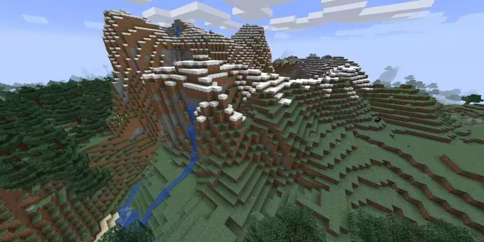 Горы – достаточно популярный выбор среди игроков, которые любят строить что-то необыкновенное или мечтают о собственном замке под облаками. Здесь есть много возвышенностей, помимо самих гор, так что если вам не нравится снег (который обычно лежит на вершинах), то вы можете подыскать себе подходящее место пониже.